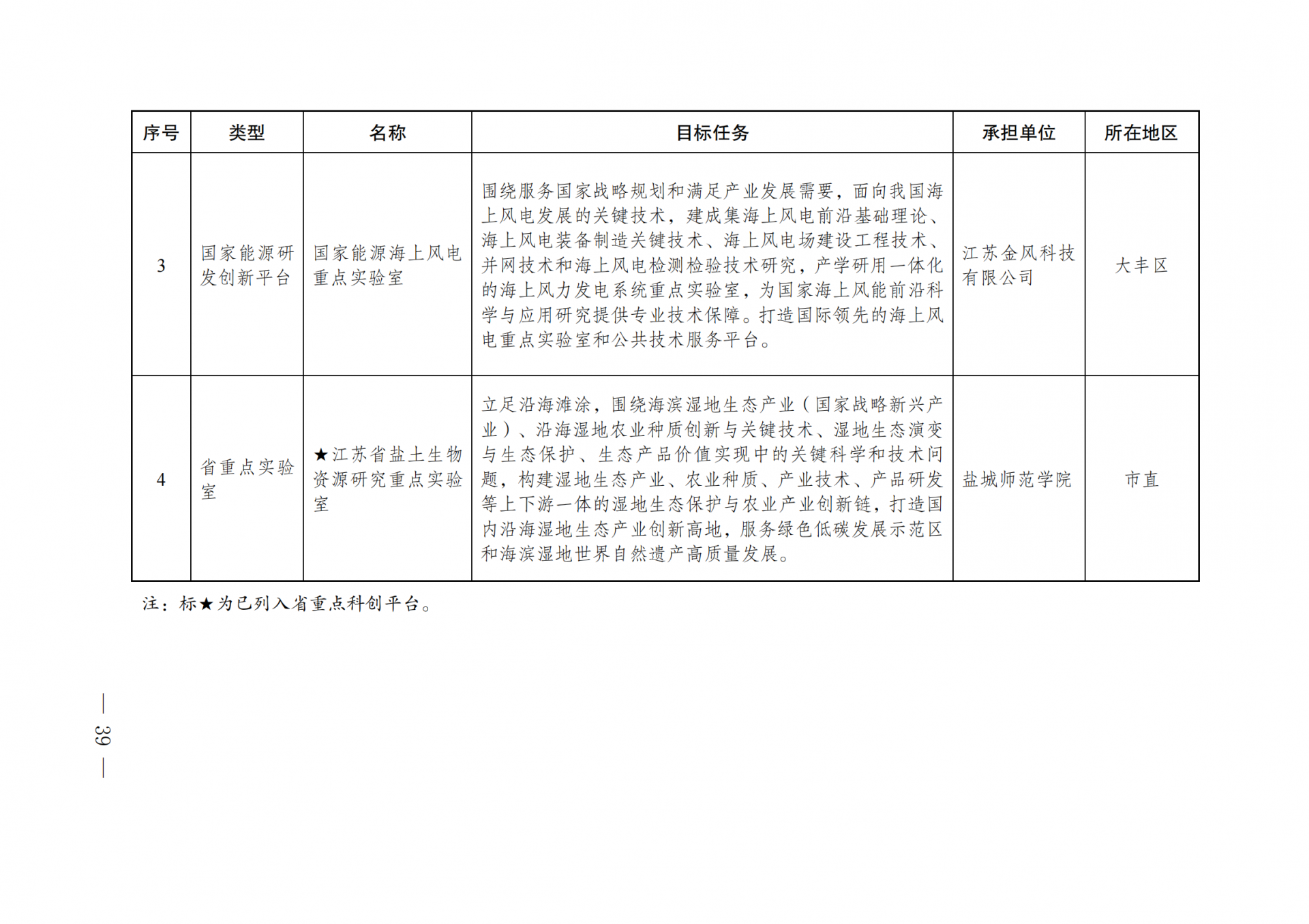 重点支持金风国家能源海上风电重点实验室争创能源研发“赛马争先”创新平台、江苏沿海可再生能源技术创新中心争创国家技术创新中心。加快推进国家级海上风电检验中心、金风科技大型直驱永磁海上风电机组检测技术国家地方联合工程实验室建设。
