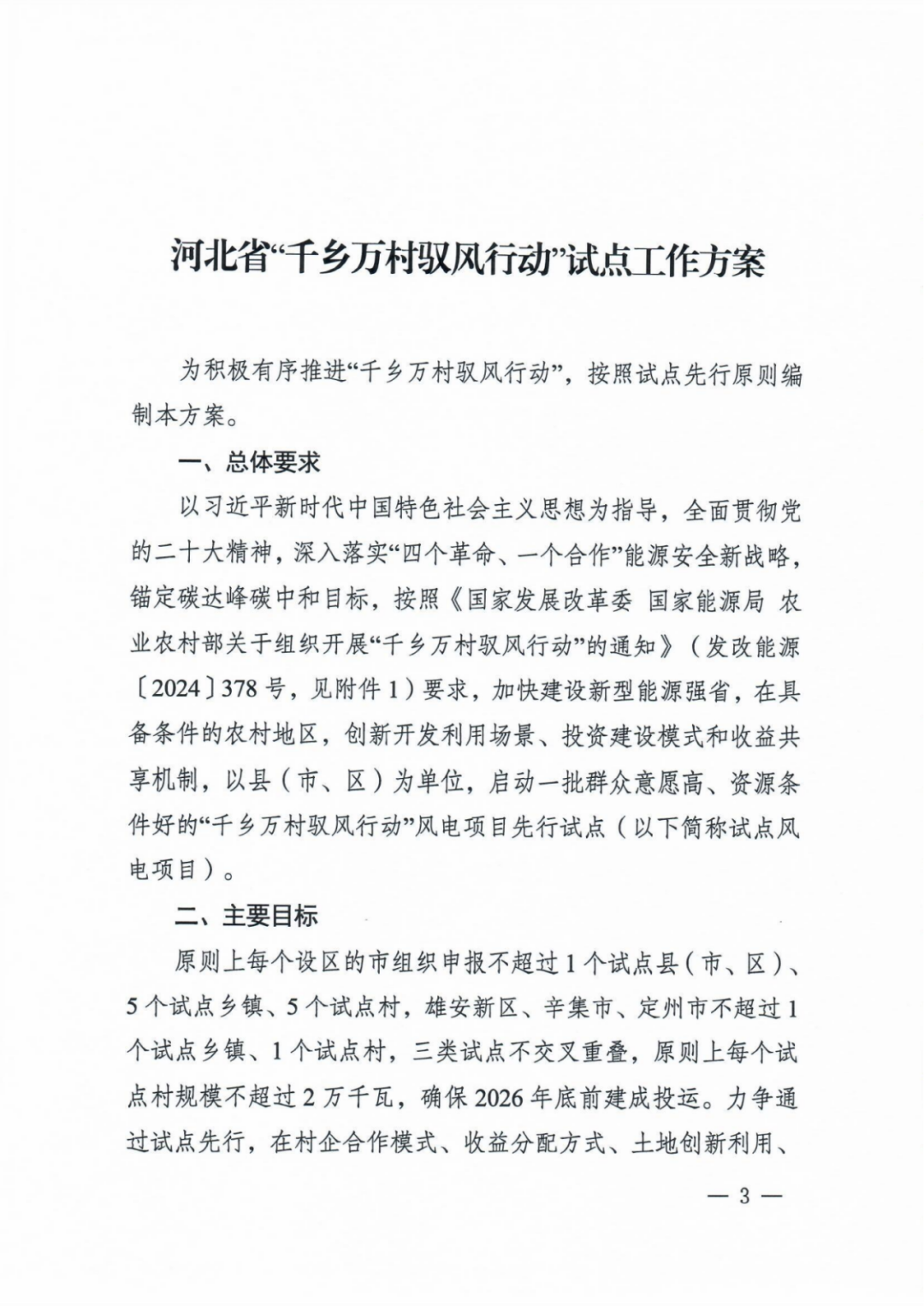 日前,河北省发展和改革委员会、河北省农业农村厅发布关于《河北省“千乡万村驭风行动”试点工作方案》和开展组织摸排工作的通知。