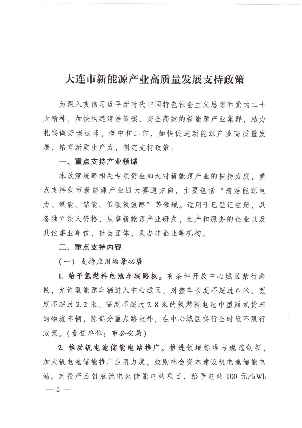 关于印发《大连市新能源产业高质量发展支持政策》的通知