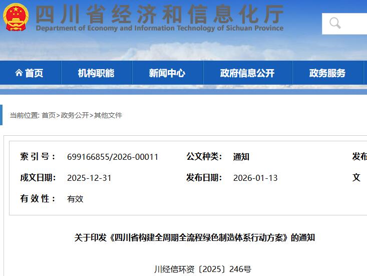 近日,四川省经济和信息化厅发布关于印发《四川省构建全周期全流程绿色制造体系行动方案》的通知。